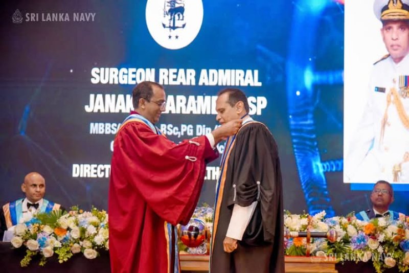 Surgeon Rear Admiral Janaka Marambe was inducted as the 9th President of the Sri Lanka College of Military Medicine (SLCOMM) in a ceremony held on 20 May 25 at the Wave n’ Lake Navy Hall in Welisara. The event was graced by the Commander of the Navy Vice Admiral Kanchana Banagoda as the Chief Guest, with Consultant Neurologist Dr. Harsha Gunasekara attending as the Guest of Honour.