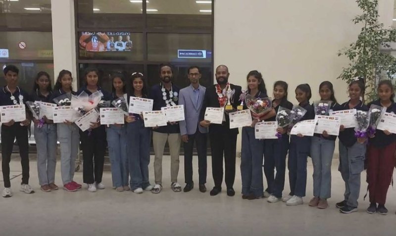 The victorious dancers were warmly welcomed at the airport by their parents, well-wishers, and officials, including Tharindu Dhananjaya, Chairman of the Sri Lanka International Folk Arts Organization.
