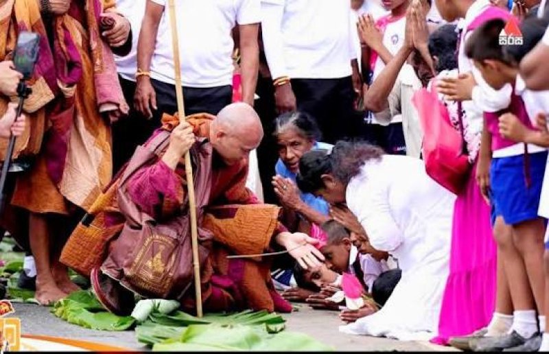 The day’s journey commenced from Beligammana Raja Maha Vihara and ended at Tholangamuwa National School, drawing large crowds of devotees and well-wishers along the route. Participants gathered in significant numbers to pay their respects and witness the procession, which has gained notable international attention for its message of global peace.